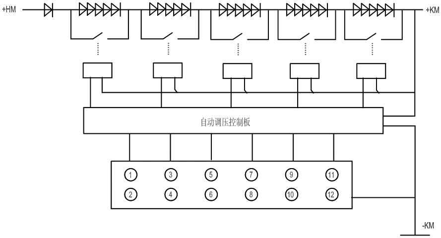 調(diào)節(jié)控制母線電壓,以向負(fù)載提供合適的直流電壓。通常采用降壓硅鏈串接于合閘母線和控制母線之間進(jìn)行調(diào)壓,允許范圍2.5%Ue??勺詣踊蚴謩诱{(diào)節(jié)。