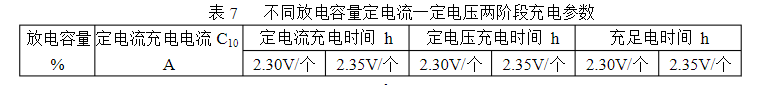 7不同放電容量定電流一定電壓兩階段充電參數(shù)